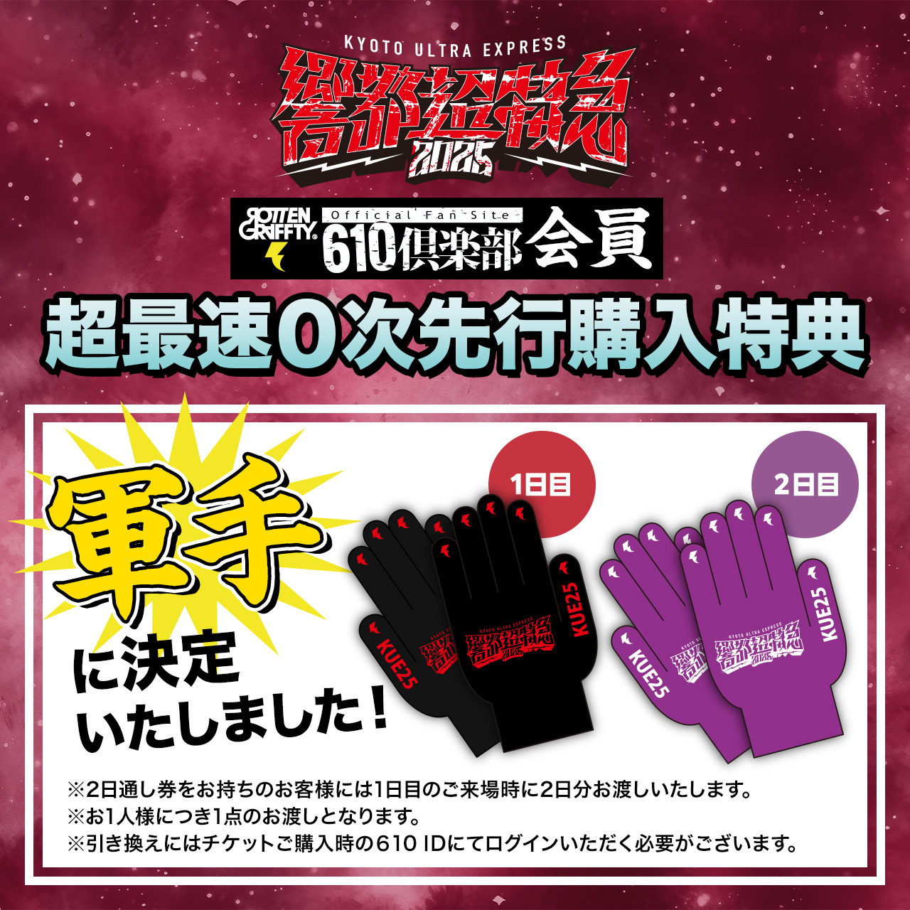 610倶楽部会員を対象とした「響都超特急2025」超最速“0次”先行のご購入特典がオリジナル「軍手」に決定いたしました!